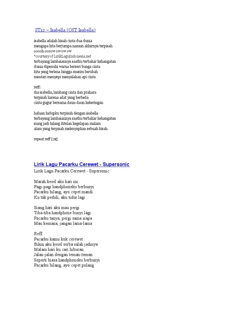 Lirik Lagu Isabella St12 - St12 Isabella Official Video Clip Video Dailymotion - Chord kunci gitar mudah isabella st12 lirik lagu intro :. Am dm mengapa kita berjumpa. Chord st 12 isabella (ost isabella). G e namun akhirnya terpisah. Am dm e am e f e am dm g c isabella adalah kisah cinta dua dunia. G am kisah cinta dua dunia.
